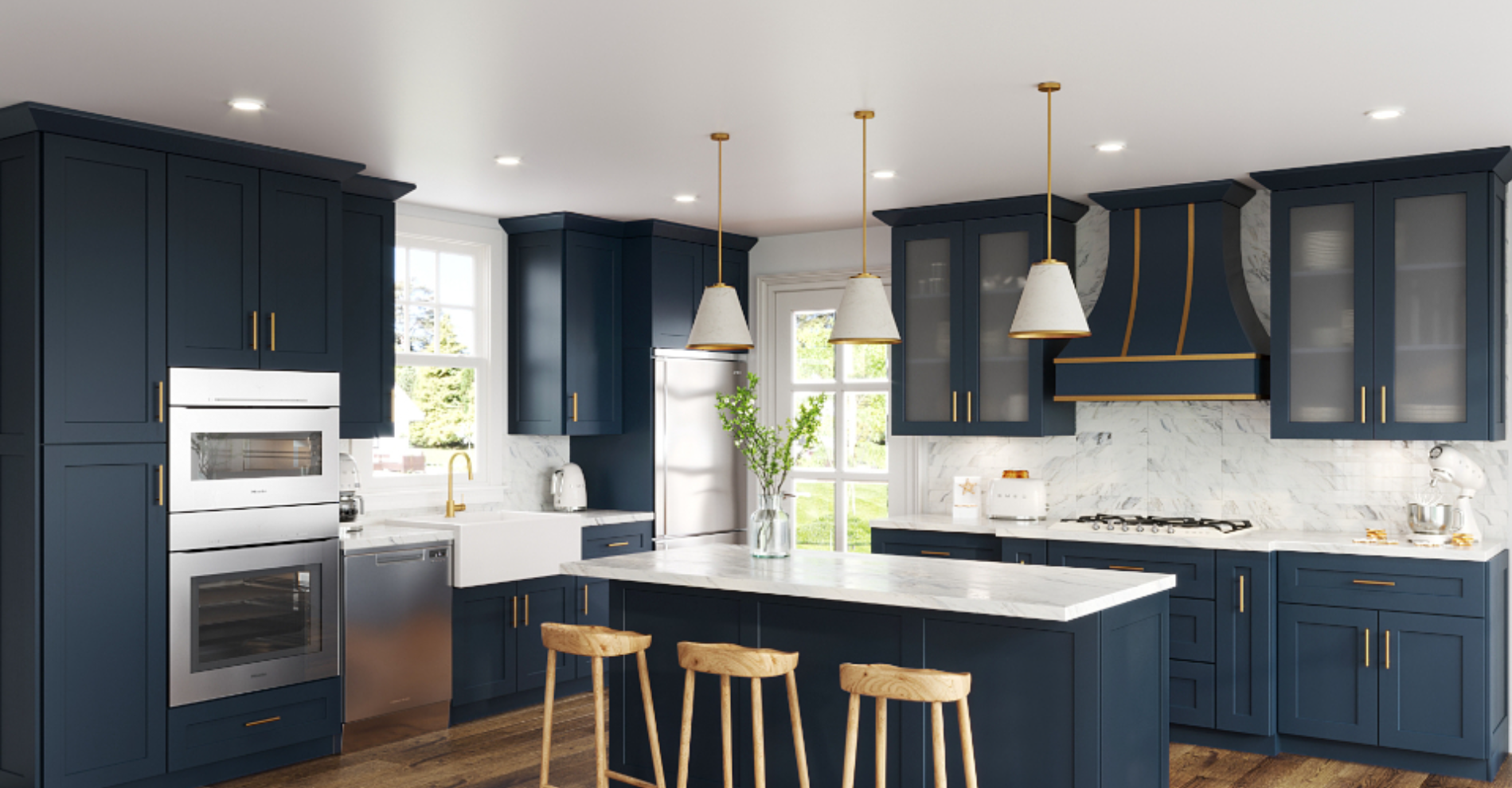 Introducing the Aria Blue cabinet style doors, an exquisite choice that exudes elegance and charm. The captivating Navy Blue finish of these cabinets brings a sense of depth and richness to your living space, creating a striking focal point.